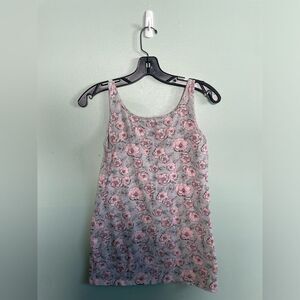 Duluth Womens Grey with Pink Floral Design Cotton Stretch Tank Top Size S