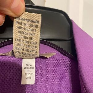 Excellent condition, no staining. The Duluth Women's Water Replent Activeware Shirt in size L is a versatile activewear top perfect for outdoor activities like hiking. Has wind panel in back, pleats on sides for easy moving when active, sleeves roll up and snap in place, This long sleeve shirt features a solid purple color, collared neckline, and snap closure with pockets for added convenience. Made of polyester fabric, this shirt is machine washable and designed for regular fit. Ideal for summer, fall, and spring seasons, this basic style shirt from Duluth is a practical choice for active women looking for comfortable and functional clothing.