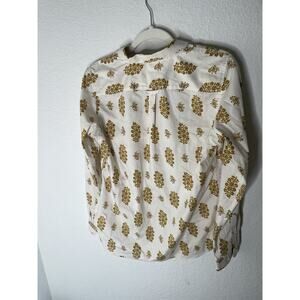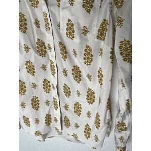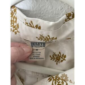 Duluth Wrinkle Fighter Button Front Shirt Womens Small Ivory Gold Floral MEDIUM