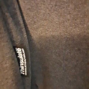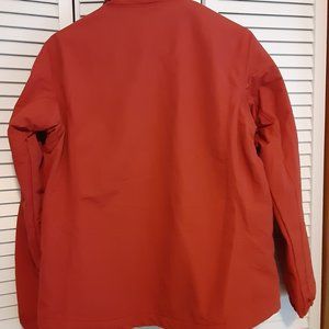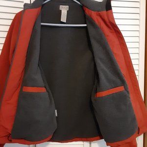 Red jacket with gray lining. Slash zippered front pockets and interior pockets. Thinsulate. Excellent condition.