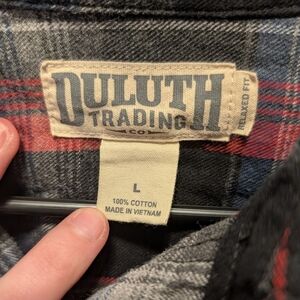 Duluth trading mens black/red/grey 100% cotton plaid flannel shirt size large