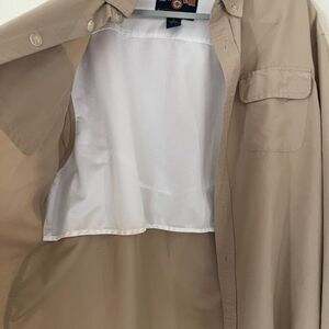 Mens size xlarge. No flaws. Tan color. Full button up with the vented back