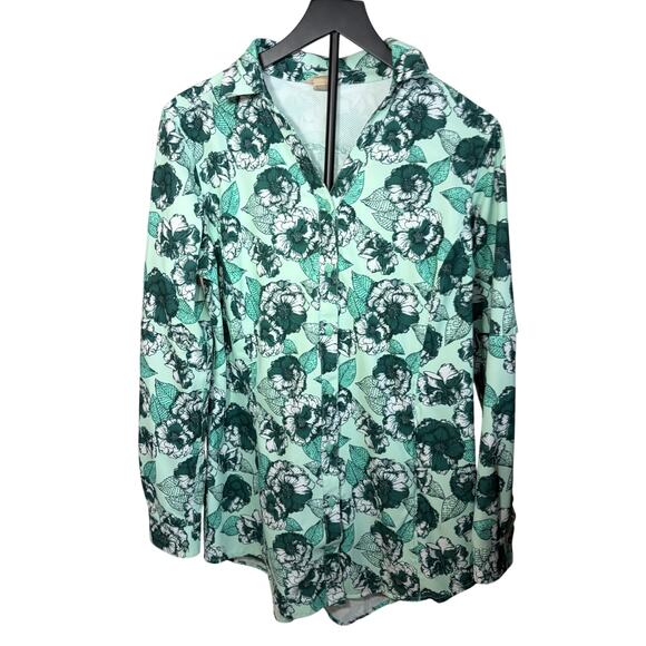 Duluth trading womens sidewinder long sleeve green floral button up.