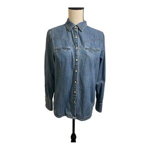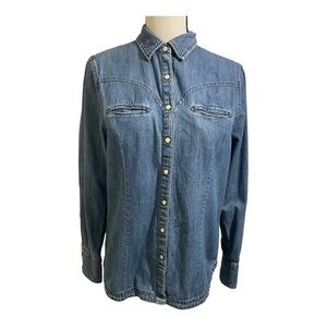 Duluth trading womens snap front pearlized buttons jean shirt. Size small