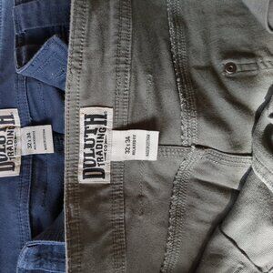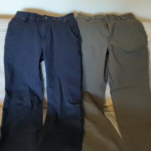 2 Pairs of DuluthFlex Fire Hose carpenter pants. Size 32x34. Like new condition. One pair in gunmetal grey, and the second pair is navy.