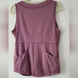 Rubberized "gripper" trim inside the bottom hem keeps your top from riding up when you reach or crouch