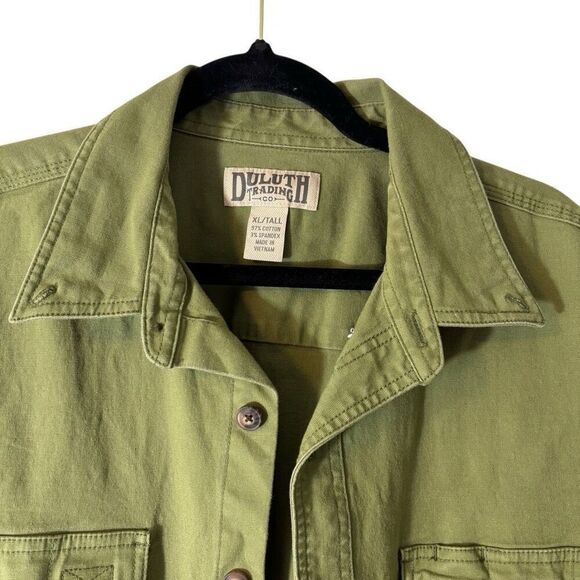 Duluth Trading Co. XL/Tall olive green canvas heavy duty shirt two chest pockets.
