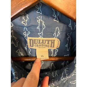 Duluth Trading Relaxed Fit Shirt Mens XL Blue Fish Short Sleeve Button Up