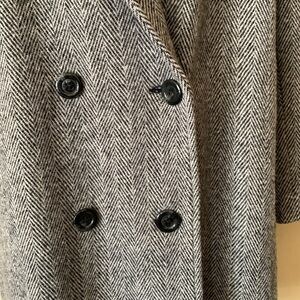 Dumas herringbone wool pea coat. Black velvet collar and double breasted button front. Fully lined and side pockets. There is no size tag but would fit small/medium. I have included measurements, so please check.