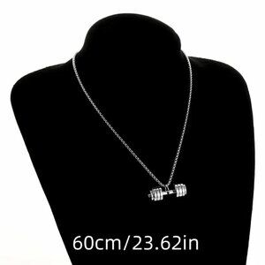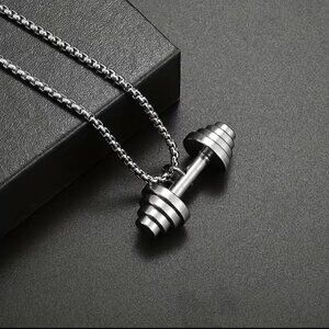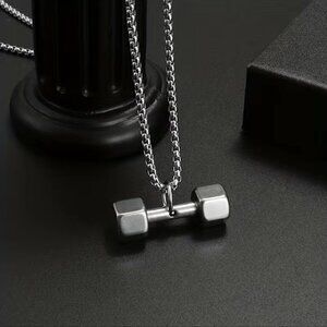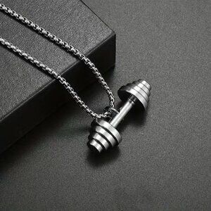 Dumbbell Tapered Weights Pendant and Necklace Stainless Steel (#846)