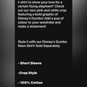 NWT Cakeworthy Dumbo Neon Crop T-Shirt