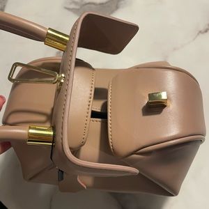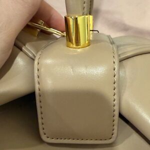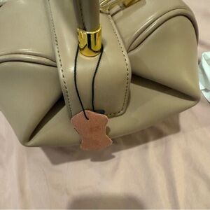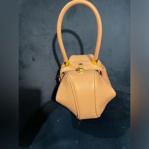 Cute dumpling bag. I bought this online from some websites a while back because I thought the bag was cute and unique. Never get to use it. Hopefully I can find a new home for home. It’s brand new never worn but when I took photo I notice a small dent on the bottom. See photo. Size approx 9 x 13.5 x 4.5 inches. Because of its unique shape it actually can fit a lot.
