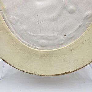 This example is a hand-finished cast plaster piece, hobbyist-signed MLL ’77, and back-stamped Duncan Ceramics Prod Inc 1975. Soft ivory and pale green tones suit Art Nouveau and Edwardian décor, while the integrated “gilt” oval frame look makes it ready to hang.