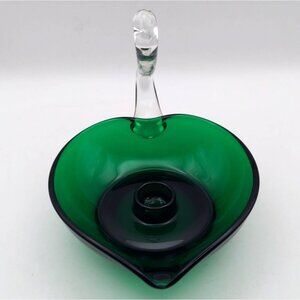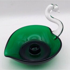 Duncan Miller Emerald Green & Clear Glass Swan Candle Holder Vintage MCM