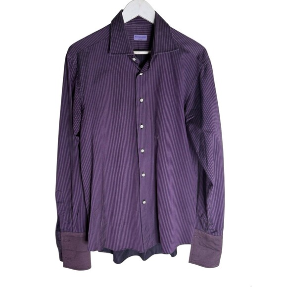 Duncan Quinn Striped Purple Button Down Shirt Cotton Silk Blend Size 17