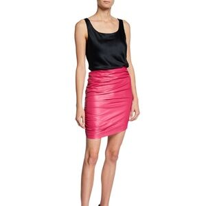 Dundas Fuchsia Pink Lambskin Leather Ruched Skirt * NEW w Tag * 45% OFF $1360
