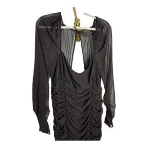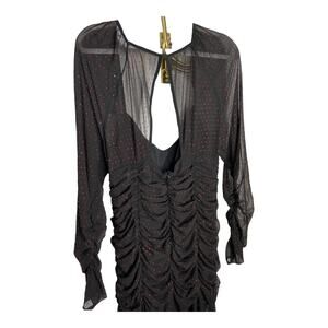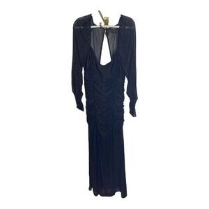Dundas x Revolve Stardust Ruched Maxi Dress Long Sleeve Side Slit Black Ruby XL