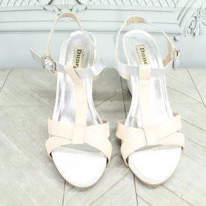 Dune Cream Silver Leather Buckles Ankle Strap Heels Sandals Size 7 EU 37