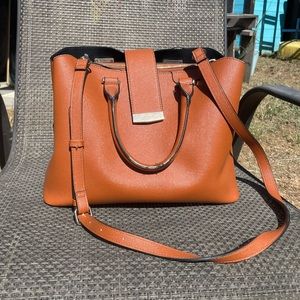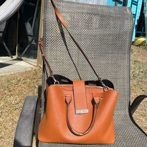 Beautiful purse By Dune London! Durable quality material with 3 compartments. There are some flaws with the stitching in some areas, but no stains or scratching on the leather or metal parts. So much life left in this bag! Make me an offer