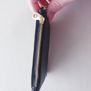 Dune London Black Leather Coin Purse Small 3 x 5 Wristlet Gold Hardware. Very good pre-owned condition, no flaws. Very clean on the inside as well.