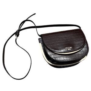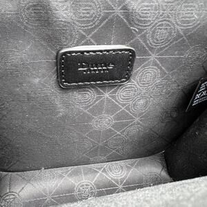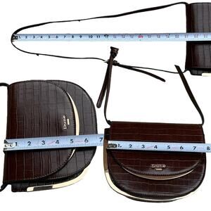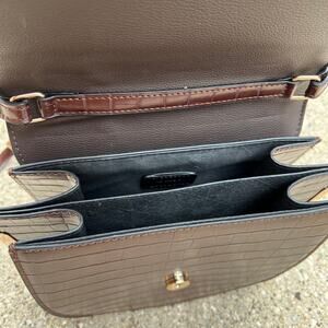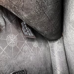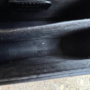 Adjustable strap - shiny metal outline detail with scuffing as seen in photo - interior lining has some staining from use