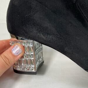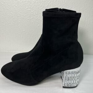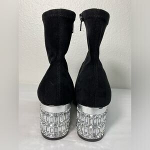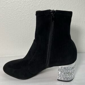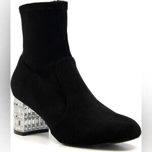 Sparkling crystals covering the block heel add undeniable glamour to this streamlined bootie.