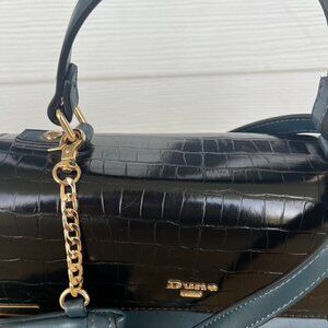 Dune London handbag with detachable coin purse and crossbody strap Blue Snake