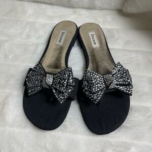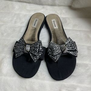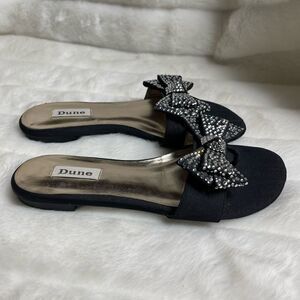 Dune black gros grain fabric thong sandals embellished rhinestones bows EUR SZ40 pre owned in good used condition no visible missing stones see all pictures any questions please message.