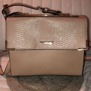 Dune London Python Flap Cream Tan Gold Faux Leather Cross Body Carry Bag