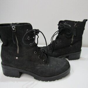 Dunes Kobe Women Blk Combat Lace Up Boot Moto Zip Up Y2K Grunge Goth Booties 9M