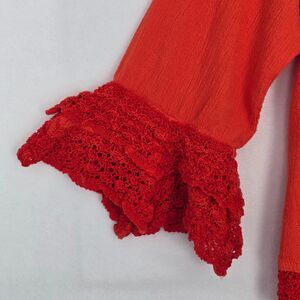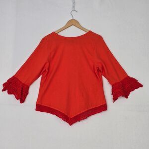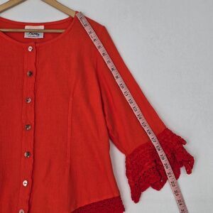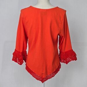Dunes Relaxed Fashion Womens M Coral Orange Cotton Gauze Crochet Trim Blouse Top