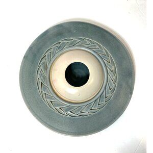 Dunes Studio PEI Ikebana Pottery Vase Braided Detail 12" Dia Blue Ceramic
