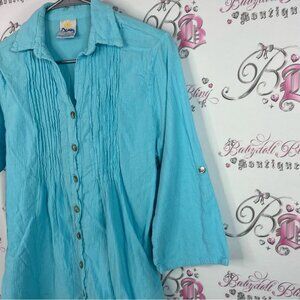 Dunes button down beach style turquoise Elegant Blue Button-Down Shirt
