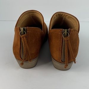 Dunes caramel (brown tones) faux suede ankle booties with back zip for easy on/off