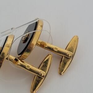 Dunhill D Cufflinks Gold Black Tone Logo Round Designer Logo Vintage Retro