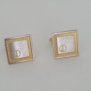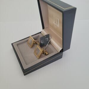 Dunhill D Cufflinks Gold Silver Tone Logo Square Designer Logo Vintage Retro Box