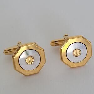 Dunhill D Cufflinks Set Gold Silver Tone Logo Geometric Logo Vintage Retro