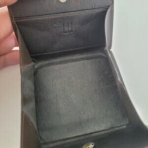 Dunhill Designer Coin Mini Wallet Brown Foldin Leather Small Compact Snap Pouch