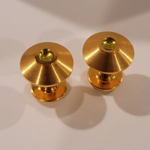 🟢Each cufflink has a little light green stone atop a circular pyramid.