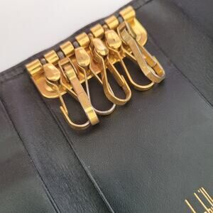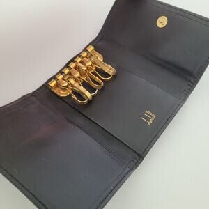 Dunhill Key Case Hooks Holder Wallet Logo Black Trifold Designer Retro Leather