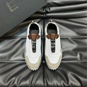 Dunhill Mens Lace-Up Casual Mesh Sneakers White