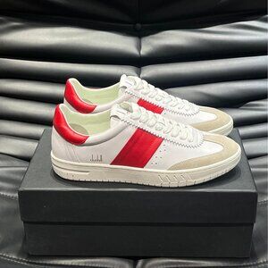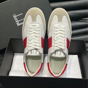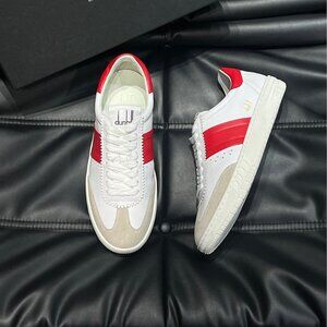 Dunhill Mens Suede Stitching Sneakers White/Red