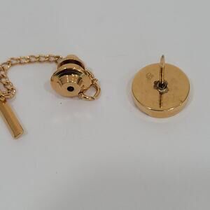 Dunhill Tie Necktie Pin Clasp Silver Gold Tone Logo Designer Round Oval Vintage