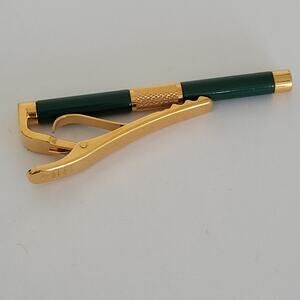 Dunhill Vintage Tie Clasp Clip Bar Gold Green Round Retro Geometric Glam