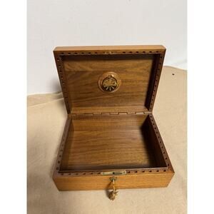 Features: In-lid humidifier with brass vent cover; includes original key with gold-tone tassel