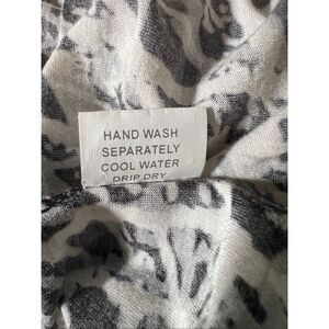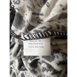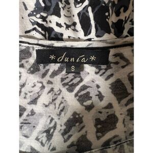 I’ve been a fan of Dunia for a while. This is a boutique brand that makes cute artsy Boho clothes for women who aren’t afraid to try something different! This particular top has a interesting design with a three-quarter sleeve and a layered inside out pattern across the chest. It’s an a line shape and is so so soft and comfortable pattern is unique with black gray and off-white soon to become a favorite of yours 100% rayon to hand wash.