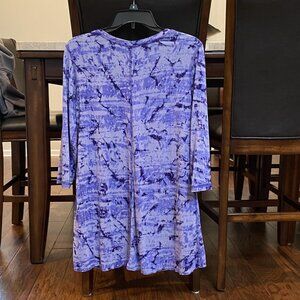 Dunia women's purple print top comfy flowy three-quarter sleeve tunic