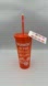 Dunkin Donuts Glow In The Dark Orange Pumpkin Fall Witch Halloween Tumbler Cup