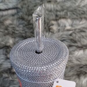 Glamorous Dunkin Donuts 2024 Limited Edition Holiday Sparkly Tumbler. Sparkling silver tumbler with rhinestones.