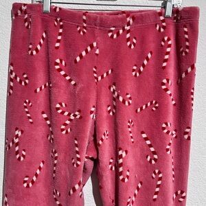 Dunnes Stores Plush Fleece Pink Candy Cane Pajama Lounge Pants Joggers Large